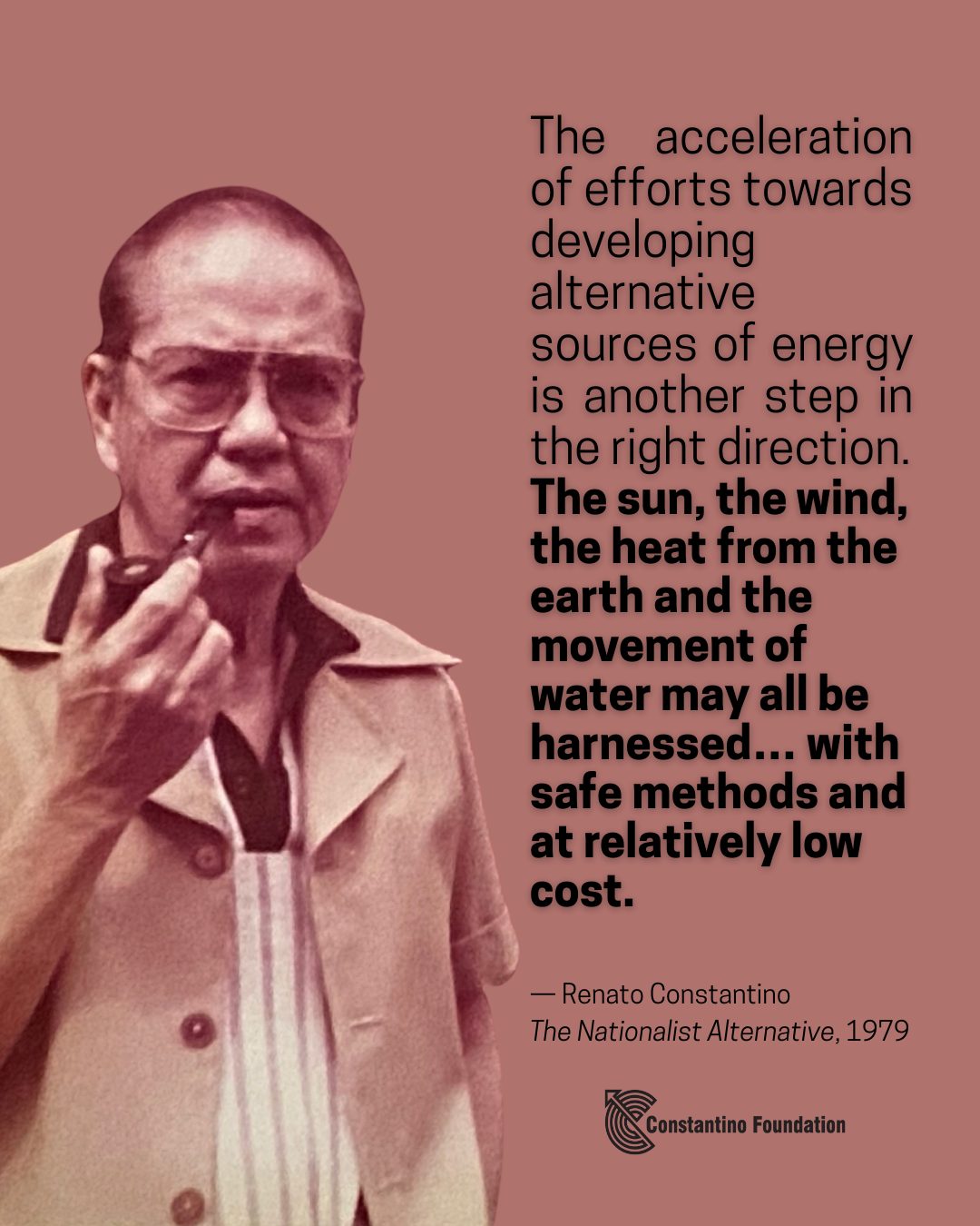 In 1979, historian Renato Constantino already recognized the urgent need for a transition to renewable energy as a matter of both national security and ecological survival. In The Nationalist Alternative, he argued that the sun, wind, geothermal heat, and water movement could all be harnessed through safe and affordable methods, providing the country with sustainable energy independence. Constantino understood that reliance on imported fossil fuels left the nation vulnerable to global price shocks and deepened ecological risks. His foresight positioned renewable energy not merely as a technological option, but as a nationalist imperative—integral to safeguarding the people, the environment, and the country’s sovereignty. More than four decades later, his call remains strikingly relevant as the Philippines and the world confront the realities of climate change and energy insecurity.